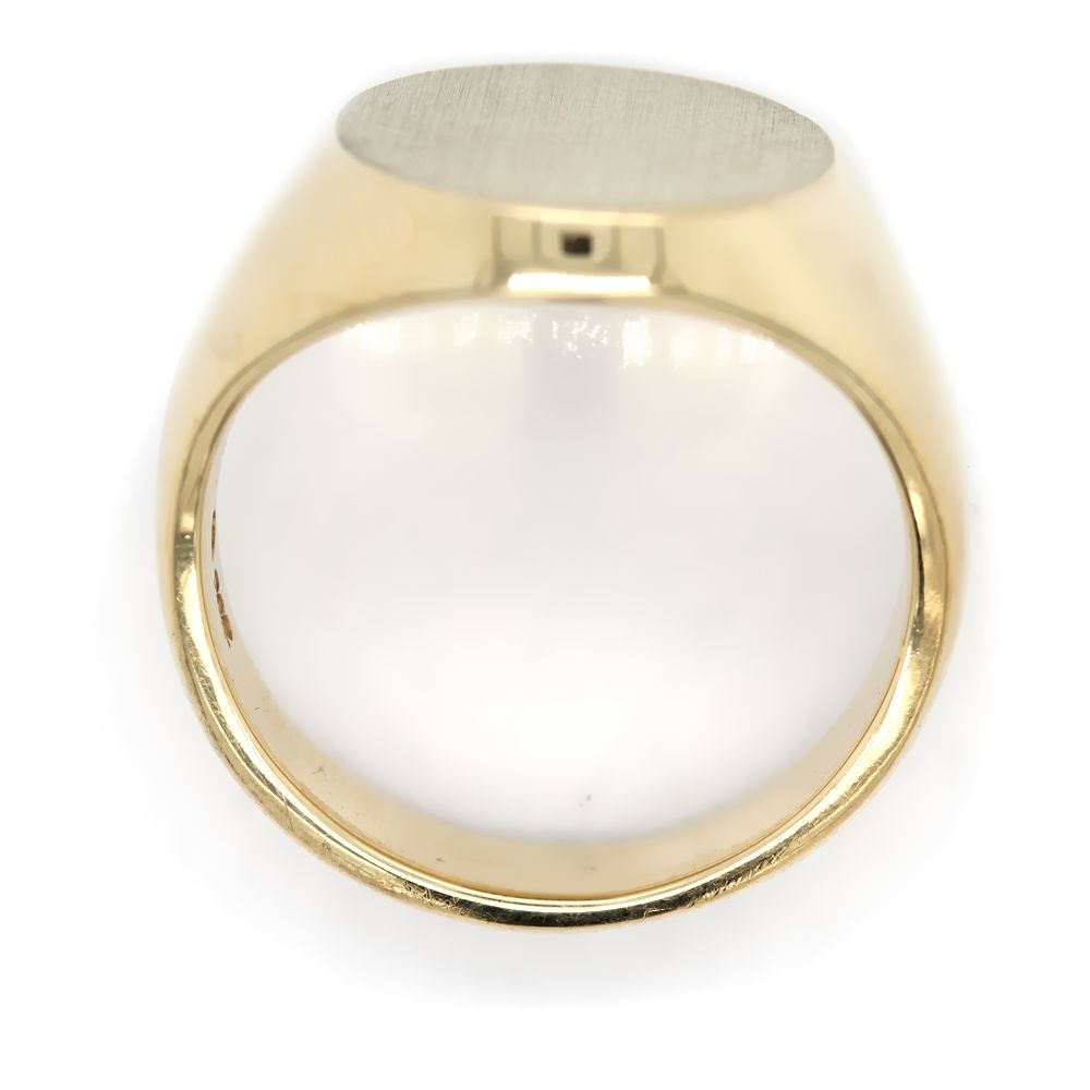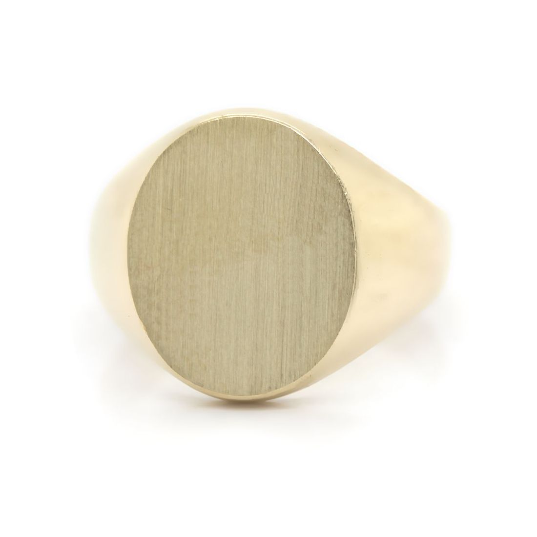 Moderner Siegelring, vollmassiv mit polierter Ringschiene und Platte in ovaler Form. Schöne stabile Ringschiene für eine lange Tragezeit.